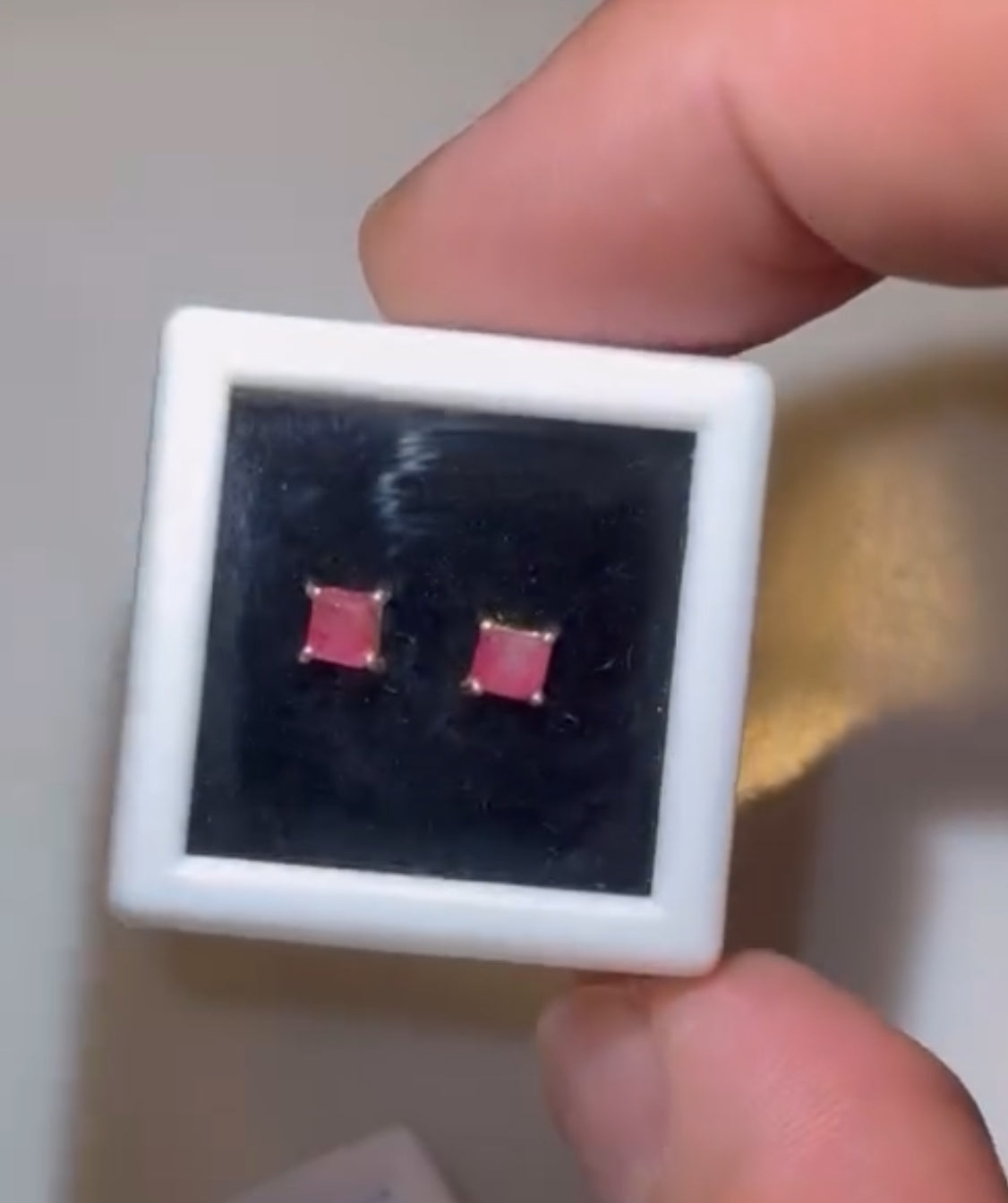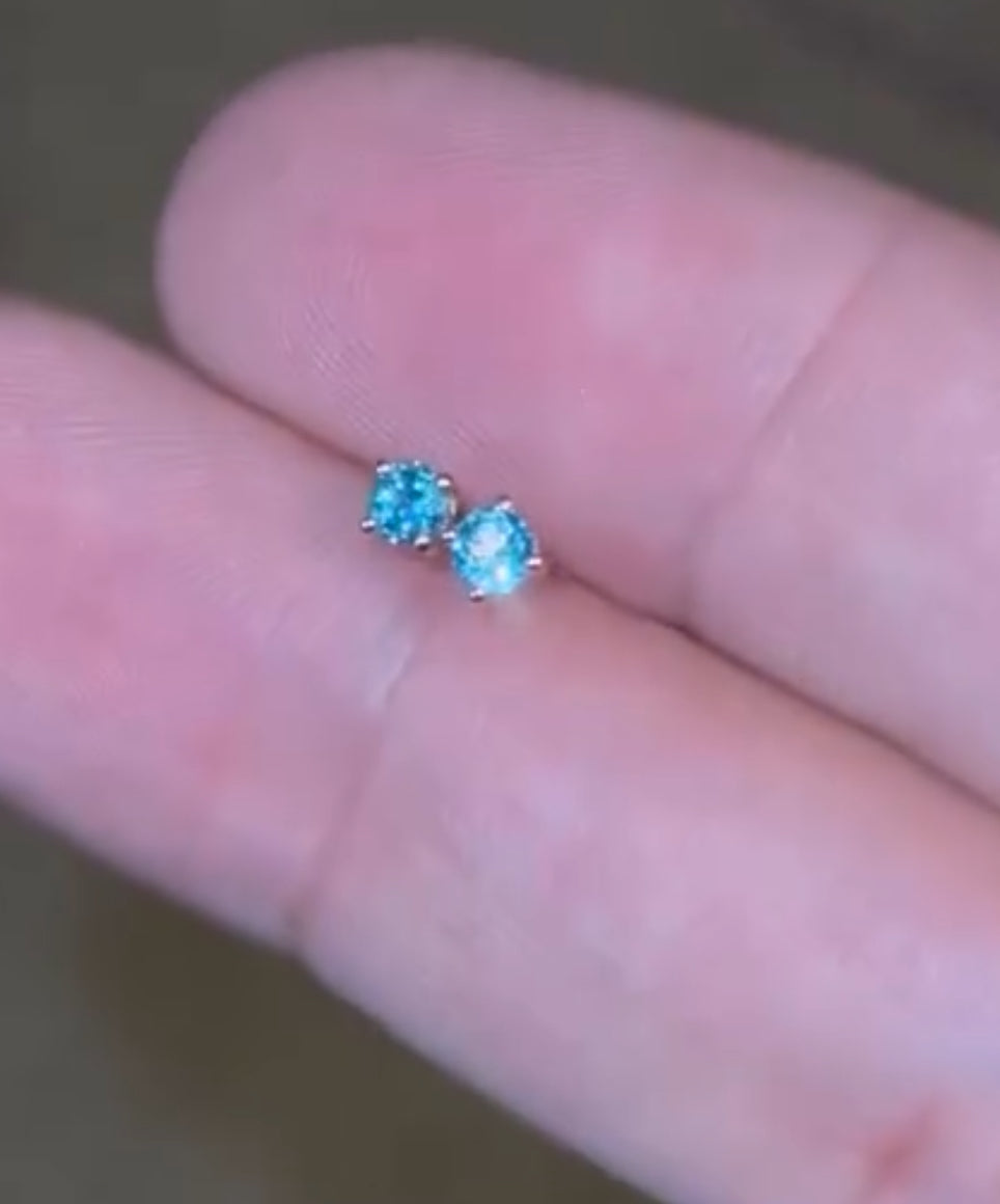 Red beryl, paraiba and Brazilian indicolite tourmaline earring studs all in 14kt yellow gold with backings!